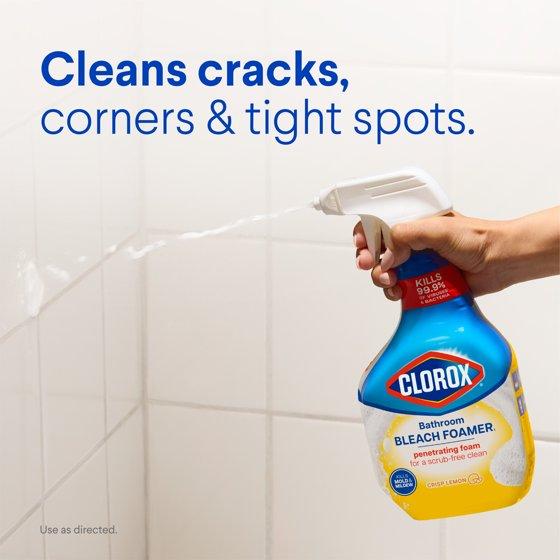 - POWERED WITH CLOROX BLEACH: This spray cleaner with a foaming formula has dependable Clorox cleaning power and leaves a pleasant Crisp Lemon scent to leave your bathroom feeling fresh