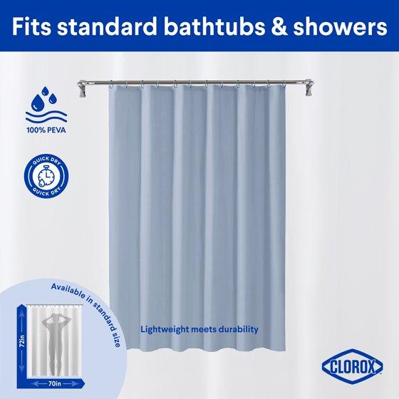 - Clorox Clean Shower Lightweight PEVA Liner & Hook Set, Standard 70" x 72" & 12 C Hooks - Blue