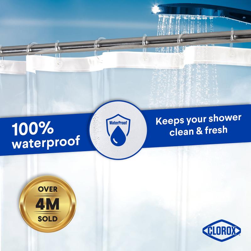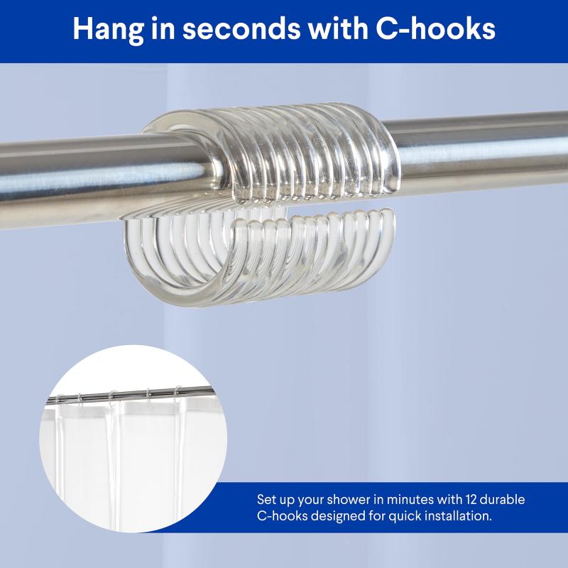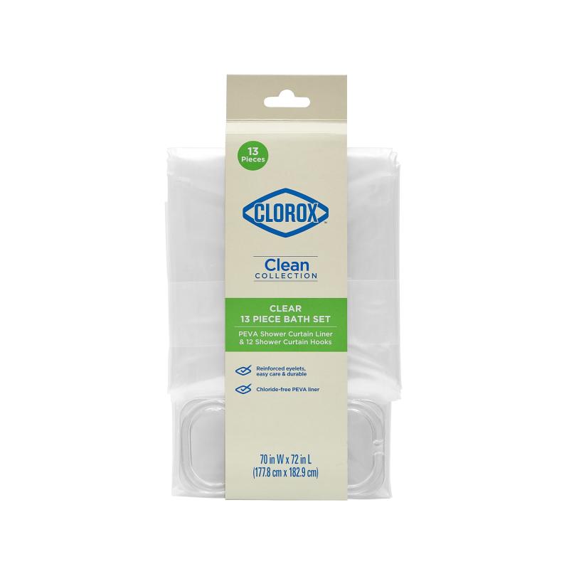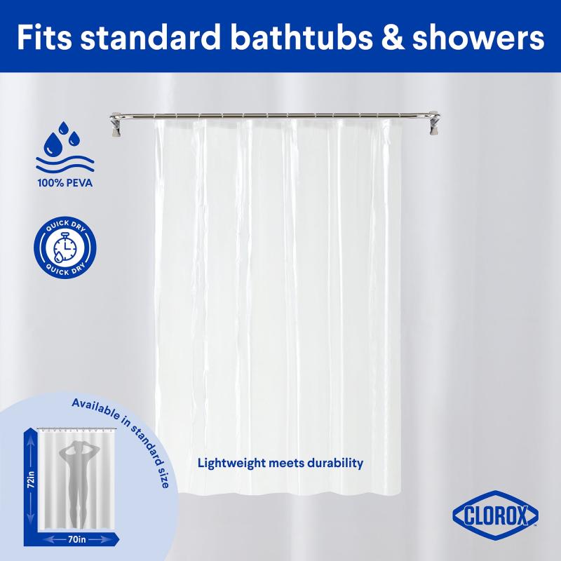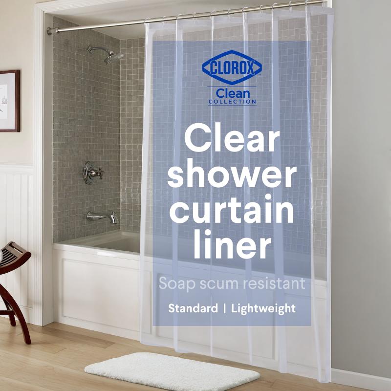 - Clorox Clean Shower Lightweight PEVA Liner & Hook Set, Standard 70" x 72" & 12 C Hooks - Clear