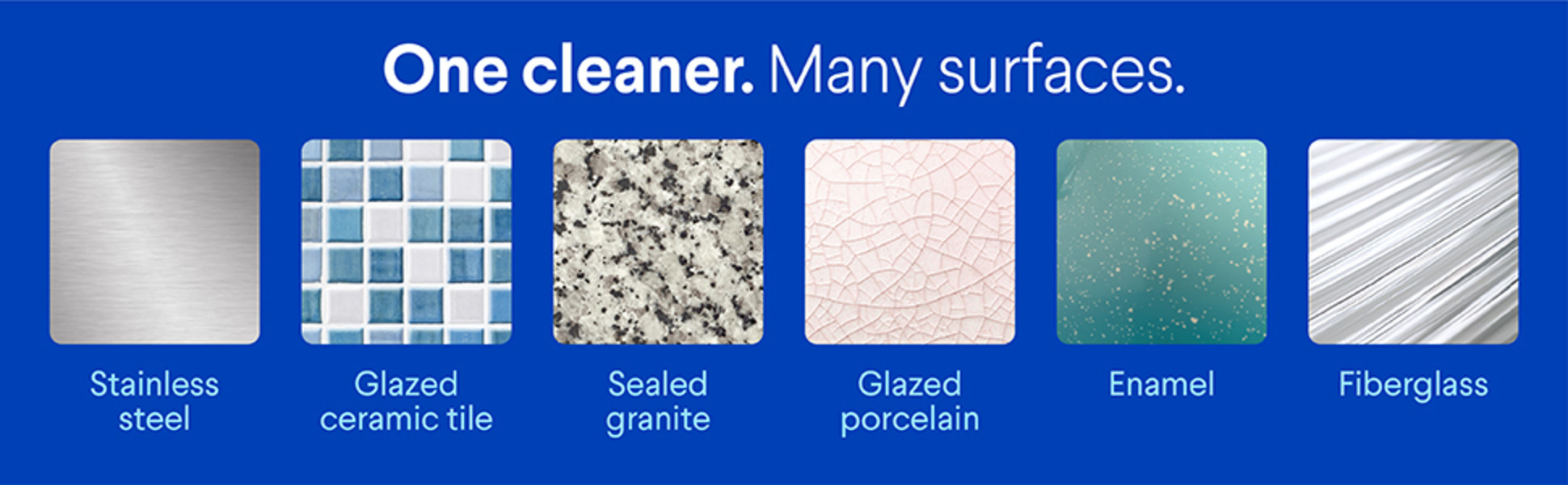 - MULTI-SURFACE CLEANER: Tackles stains and odors on multiple surfaces, like stainless steel, sealed granite, glazed porcelain and ceramic, enamel and fiberglass; avoid prolonged contact with porcelain