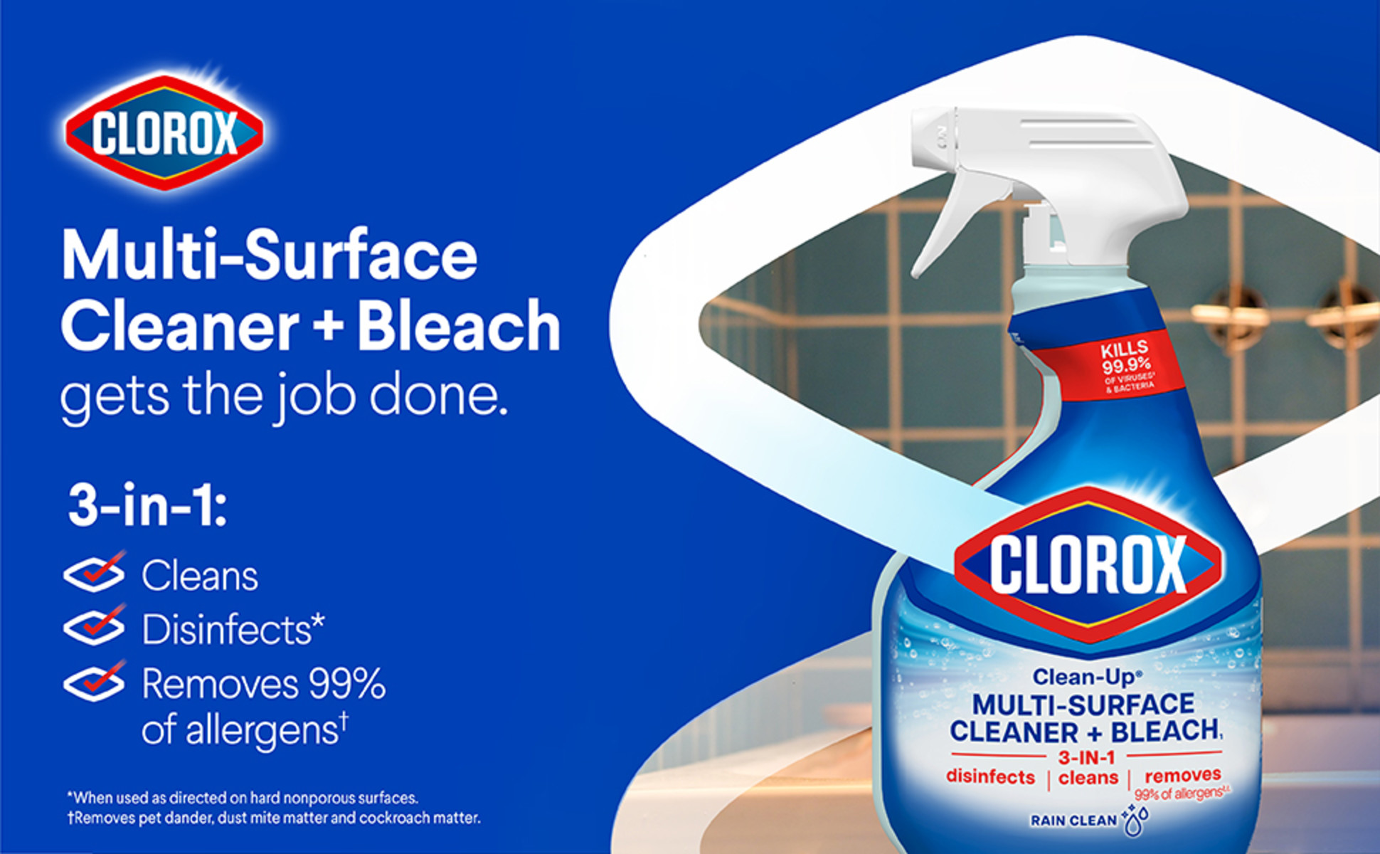 - REMOVES ALLERGENS: Clorox Multi-Surface Cleaner removes 99% of allergens, including dust mite matter, pet dander and cockroach matter, to help keep your family healthy and safe
