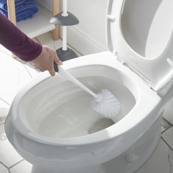 - Antimicrobial treatment on brush bristles add protection from bacteria, mold and mildew and will not wear off or wear away. New modern, decor-neutral design.