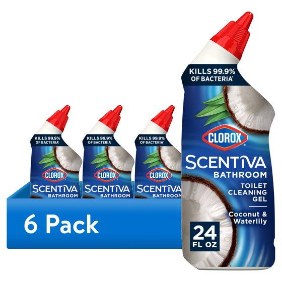 (6 pack) Clorox Scentiva Bathroom Toilet Cleaning Gel, Coconut and Waterlily, 24 Fluid Ounces