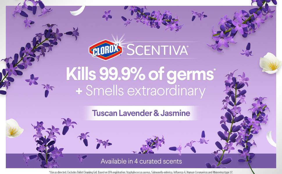 - LAVENDER AND JASMINE SCENT: From a curated collection of Clorox Scentiva fragrances, experience the floral aroma of lavender and jasmine mixed with sultry rose and hyacinth to transport the senses