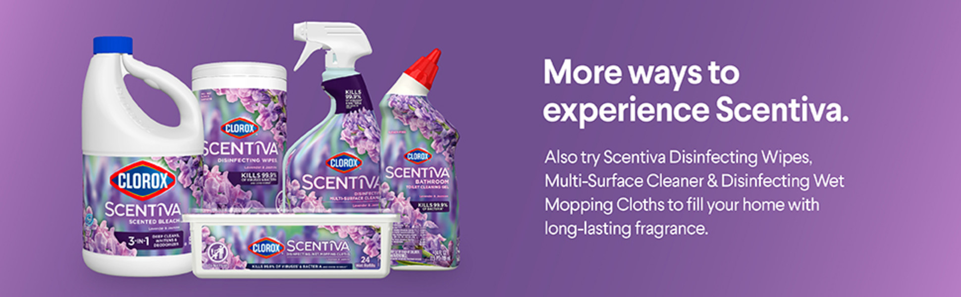 - SCENTED LIQUID BLEACH: One 81 fl. oz. bottle of Clorox Scentiva Scented Bleach in Lavender and Jasmine scent