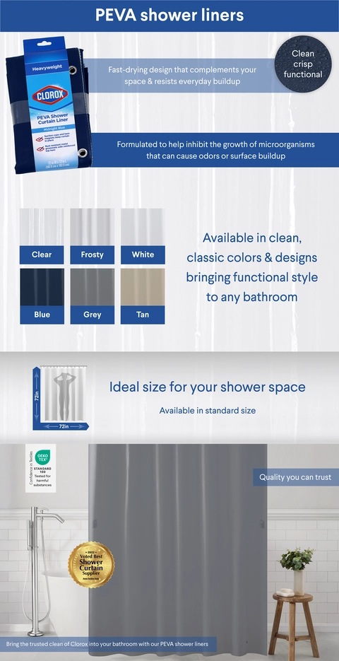 - Clorox Shower Curtain Liner Heavyweight Waterproof PEVA with Metal Grommets 72" x 72" Frosty