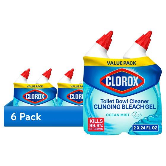(6 pack) Clorox Toilet Bowl Cleaner Clinging Bleach Gel, Ocean Mist, 24 fl oz, 2 Pack