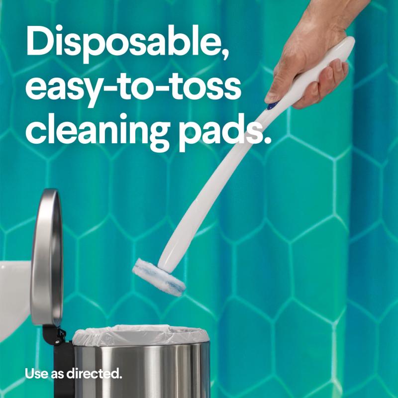 - DISPOSABLE SCRUBBING PADS: Never touch an icky toilet brush again with disposable scrubbing pads that conveniently pop off into the trash so you can toss the mess every time