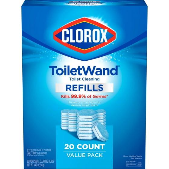- BATHROOM CLEANING PRODUCTS: This 20 count of ToiletWand refills with Clorox cleaner eliminates the need to carry around a bottle of cleaner and germ ridden toilet brush