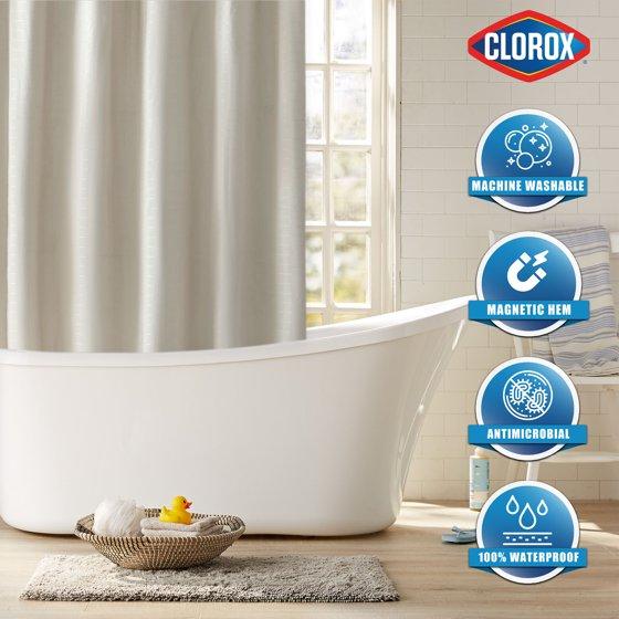 - Clorox Solid Waterproof Fabric Shower Curtain, Checkered Pattern, Tan, 72" x 72"
