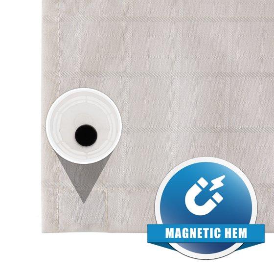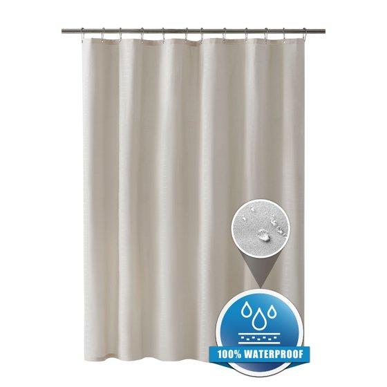 - CLASSIC DESIGN: The solid checkered weave of the fabric and superior quality of the polyester yarns provide this curtain with a firm, smooth texture, which promotes water bead formation and is made to withstand damp, moisture-rich bathroom environments.