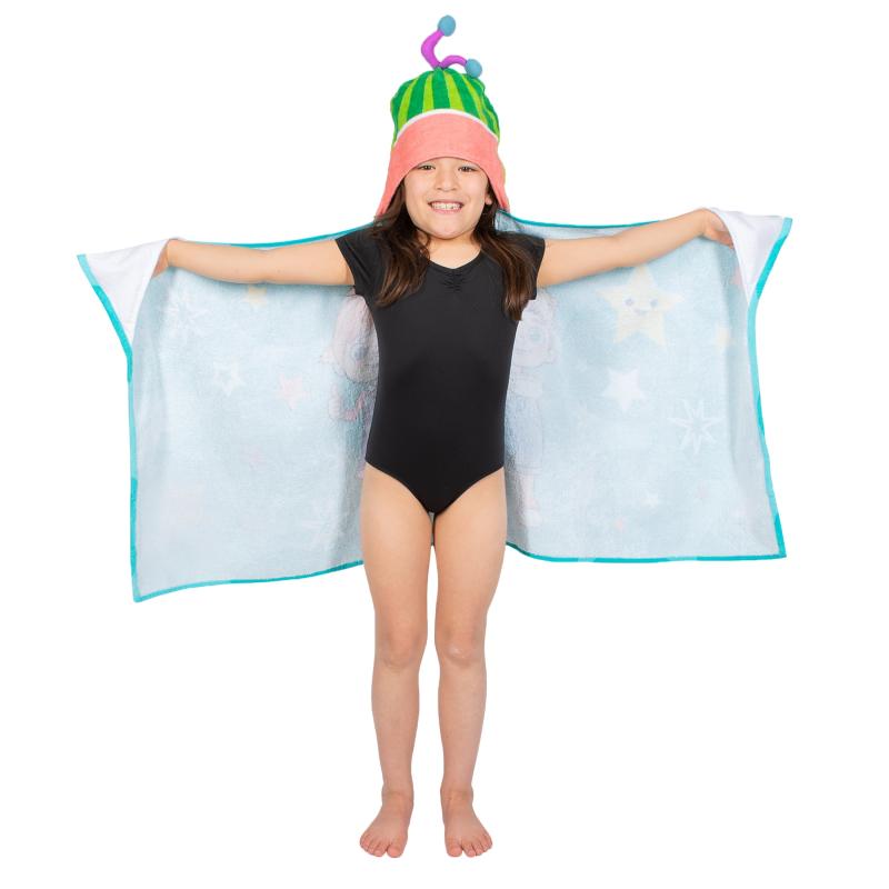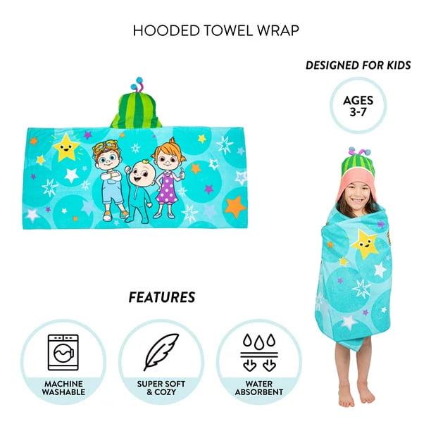 - COCOMELON DESIGN: Kids can become Cocomelon in this cozy hooded towel wrap. The cool red design incorporates a fun cape and hood complete with a Cocomelon design.