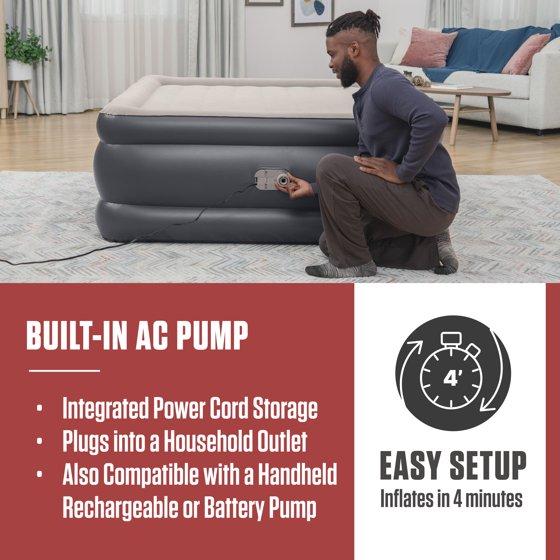 - Built-in 110-120V AC pump inflates the bed in 4 minutes