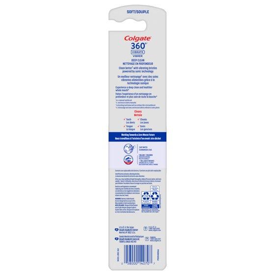 - Includes one (1) Colgate 360 Vibrate Deep Clean Battery Operated Toothbrush, 1 AAA battery included