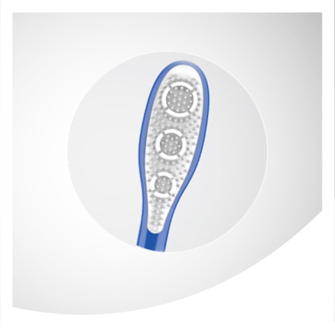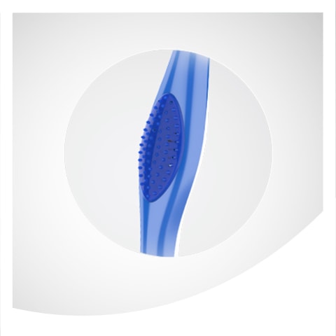 A comfortable, ergonomic handle and thumb grip for precise maneuvering, to help reach all areas of your mouth.