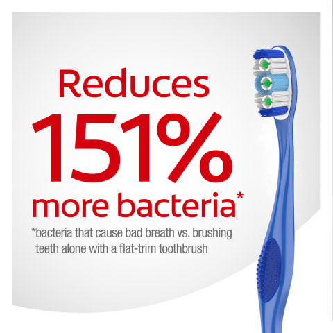 - This adult toothbrush reduces 151% more bacteria (bacteria that cause bad breath vs. brushing teeth alone with an ordinary flat-trim toothbrush)