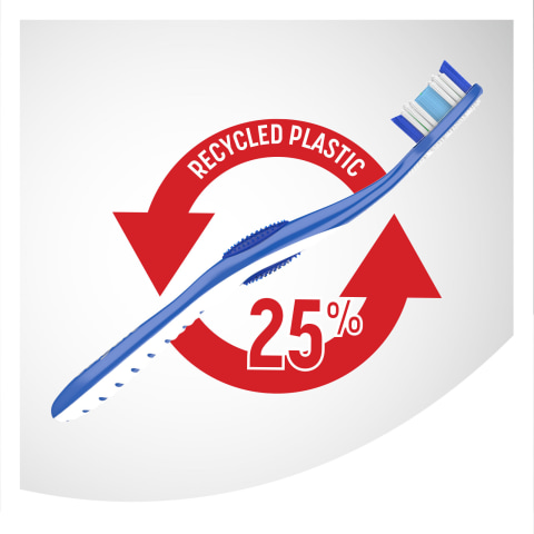 - The adult toothbrush is made with a 25% recycled plastic handle
