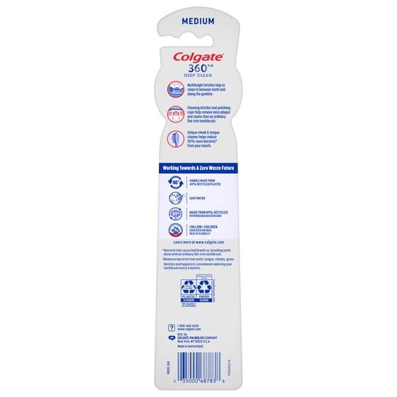 - Includes two (2) Colgate 360 Whole Mouth Clean Adult Toothbrushes, Medium Toothbrush Pack