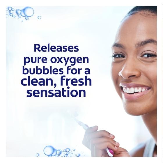 - Whitening toothpaste features a unique baking soda and peroxide formula that releases pure oxygen bubbles for a clean, fresh sensation