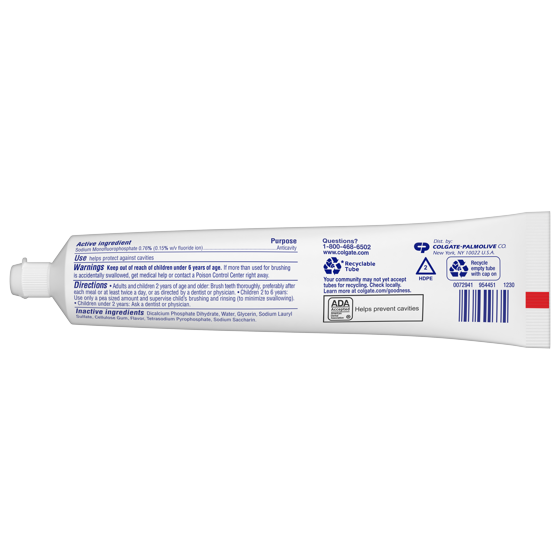 - Colgate Cavity Protection fluoride toothpaste fights cavities