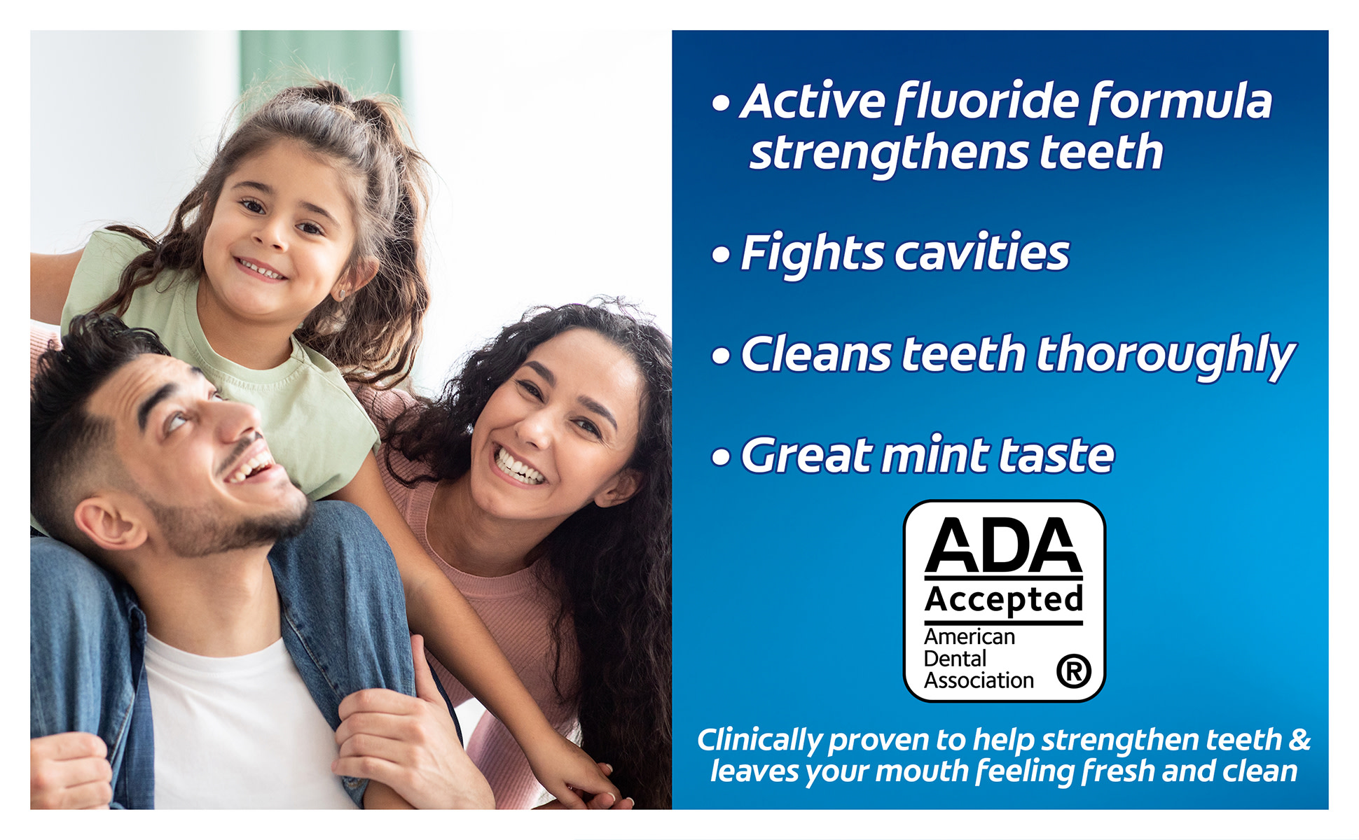 - Strengthens teeth enamel with active fluoride, a key ingredient that helps prevent tooth decay and cavities