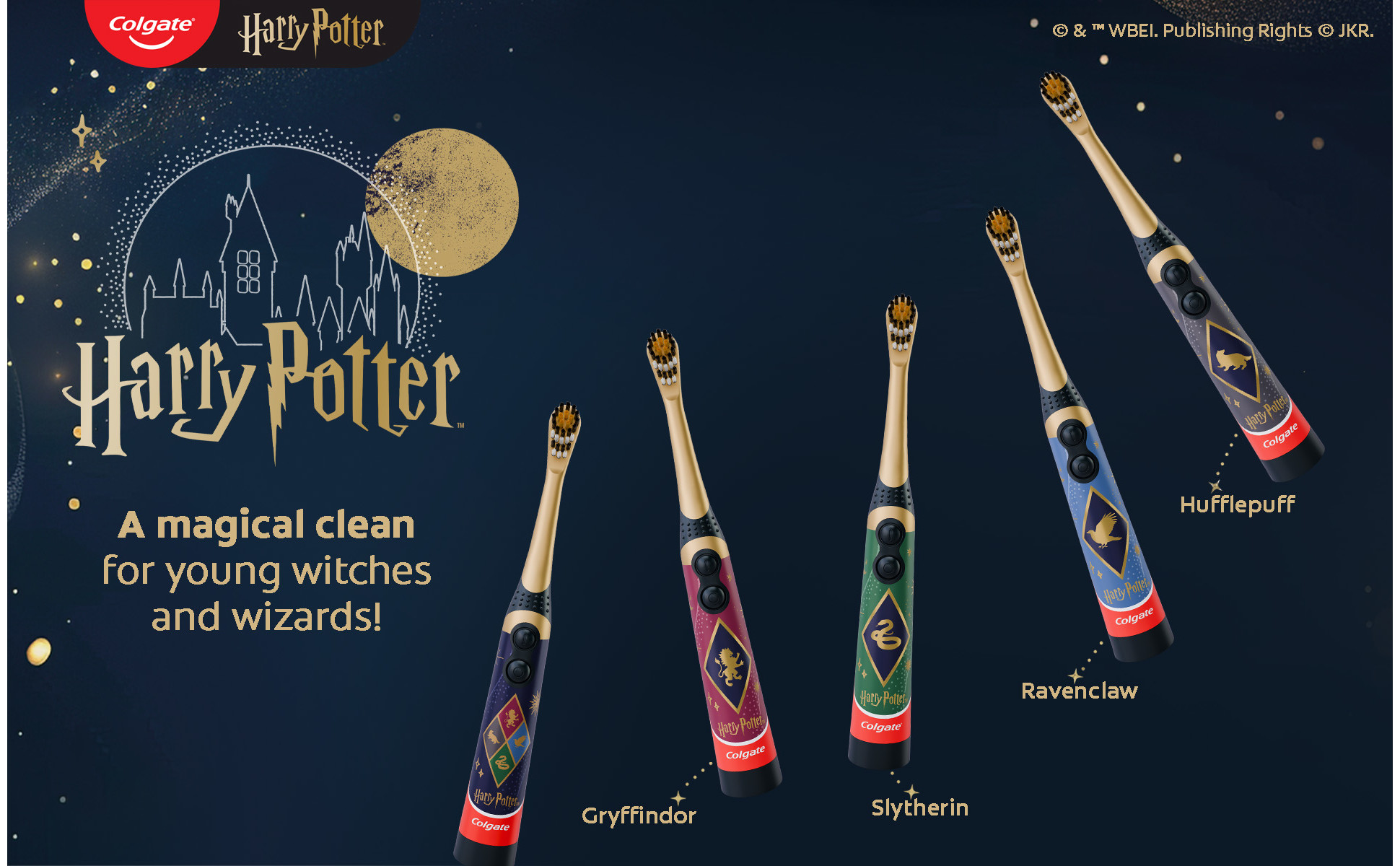 - Collect all five Harry Potter toothbrush designs including Gryffindor, Hufflepuff, Ravenclaw, Slytherin, and the Hogwarts Four Houses