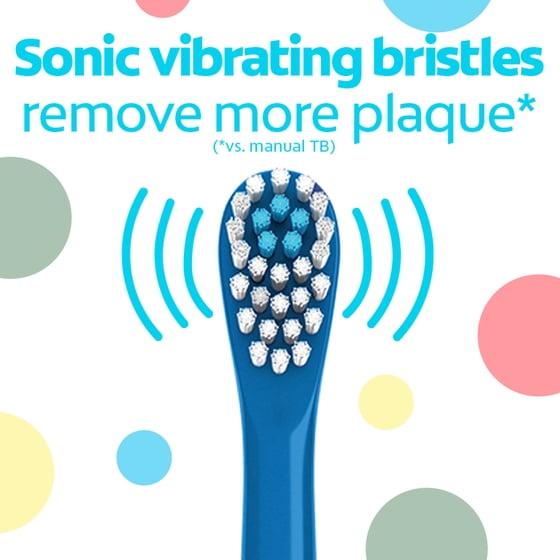 - This Colgate battery powered toothbrush for kids has a small, vibrating brush head with extra soft bristles that cleans teeth and sweeps away plaque