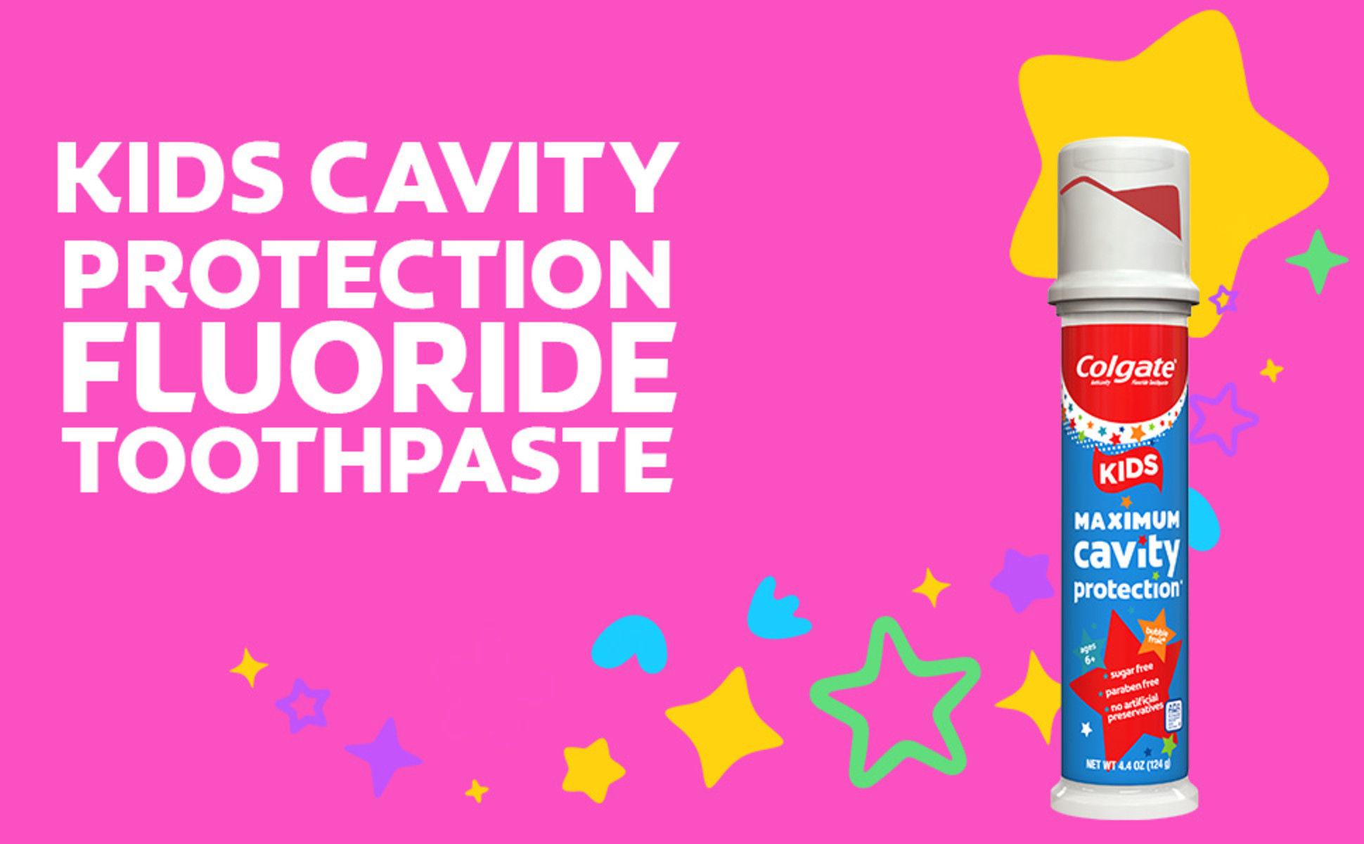 - Includes one (1) 4.4 oz pump toothpaste tubes of Colgate Kids Cavity Protection Toothpaste, Kids Toothpaste Pump with Fluoride