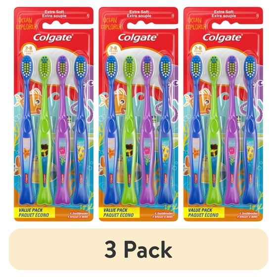 (3 pack) Colgate Kids Toothbrush Value Pack, Ocean Explorer, Extra Soft, 4 Pack