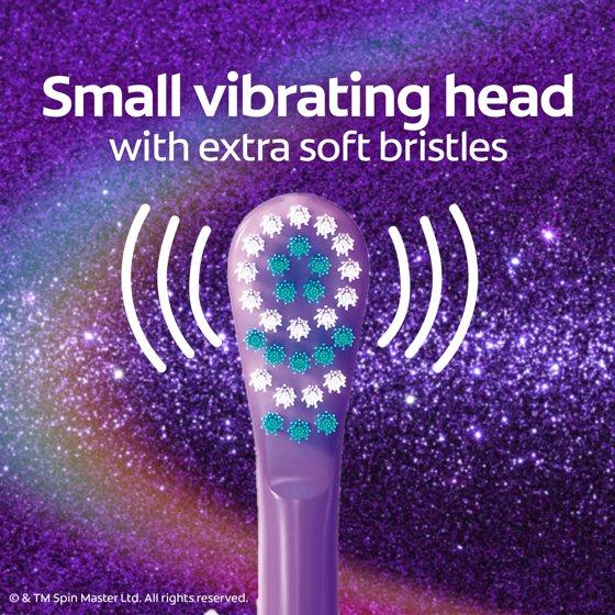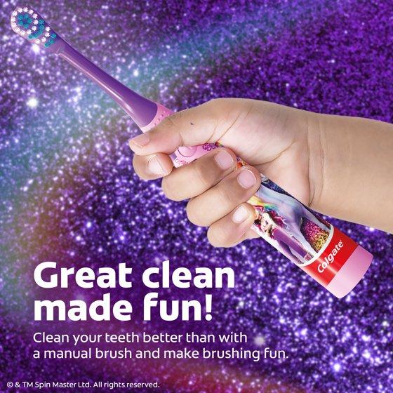 - This Colgate battery powered toothbrush for kids has a small, vibrating brush head with extra soft bristles that clean teeth and sweep away plaque