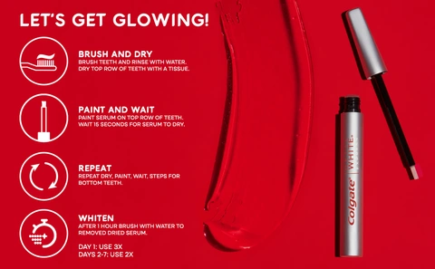 - To use, dry your teeth after brushing and paint the whitening gel on each tooth, then let the gel dry for 1 hour and brush with water to remove