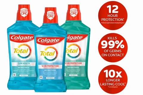 - Colgate Total Alcohol Free (1) Peppermint Mouthwash delivers 24-hour protection against bacteria