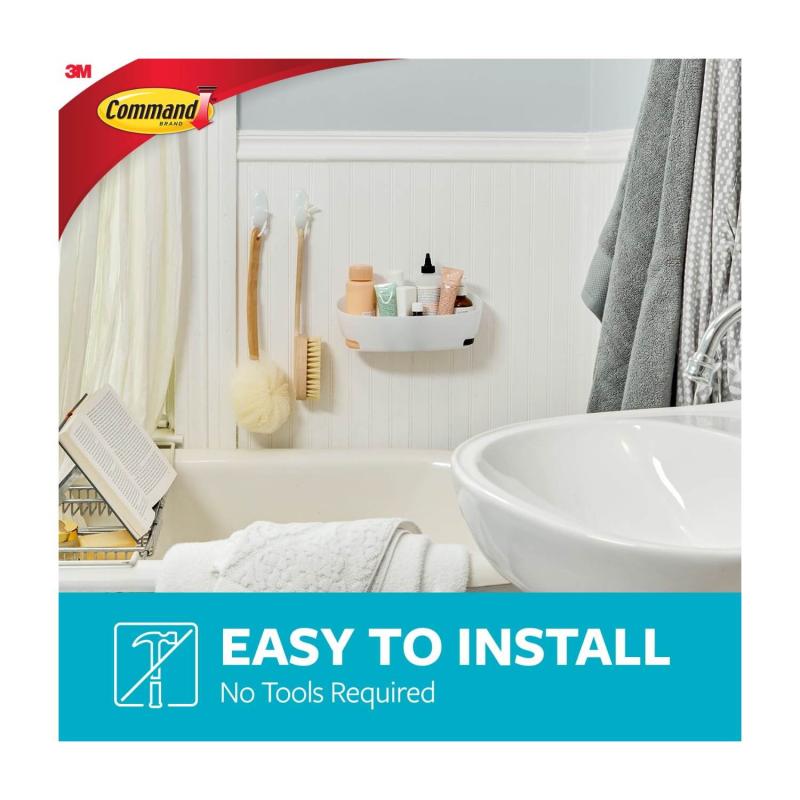 Command 5 Piece Bath Set stands up to hot, wet and humid environments and sticks to a variety of surfaces, including glass, mirror, tile, fiberglass, wood and painted surfaces. Tested and proven to hold better than suction cups, these items are easy to apply and come off cleanly without damage. Cleaning is easy just remove an item from mounting bases on wall, clean it with regular household cleaners and slide back on to mounting base. Repositioning is easy with assorted water resistant refill strips. Great for bathroom organization including guest and kids' bathrooms, renters and dorm life!