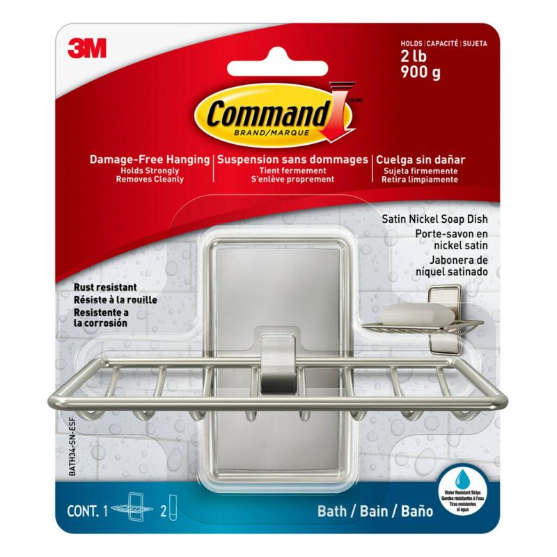 Command Soap Dish, Satin Nickel, Bathroom Organizer, 1 Soap Dish and 2 Command Strips