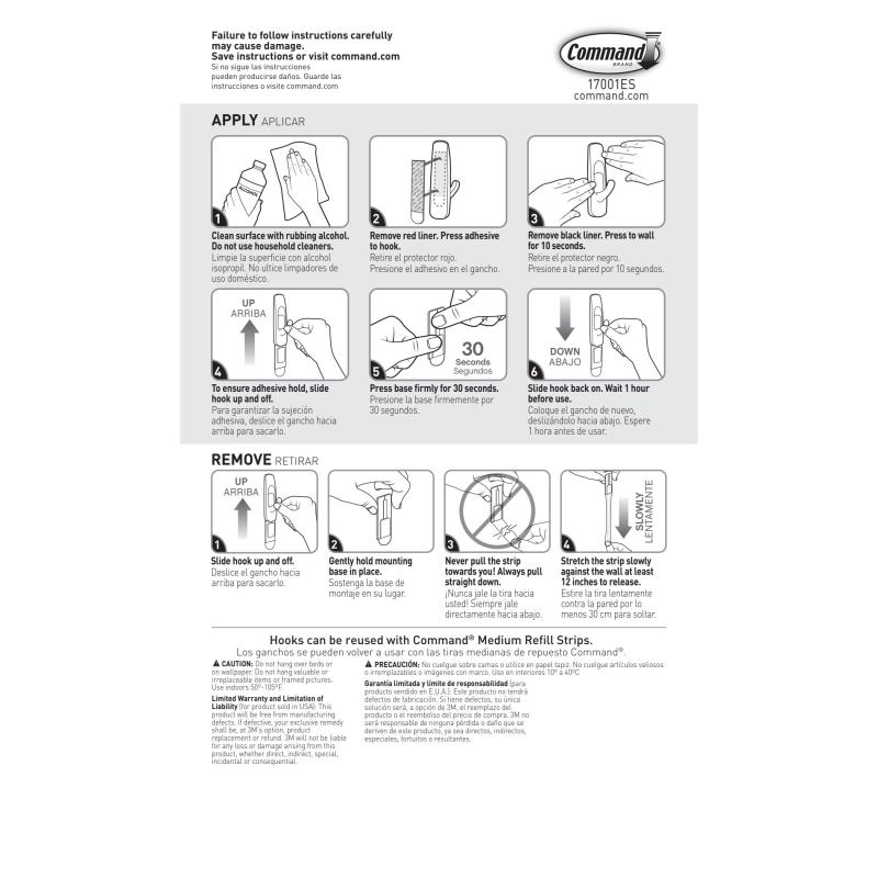 - EASY CLEAN REMOVAL: Lightly hold the top of the wall adhesive strips and slowly pull straight down towards the floor to remove the 3M Hooks and prevent damage of walls and surfaces