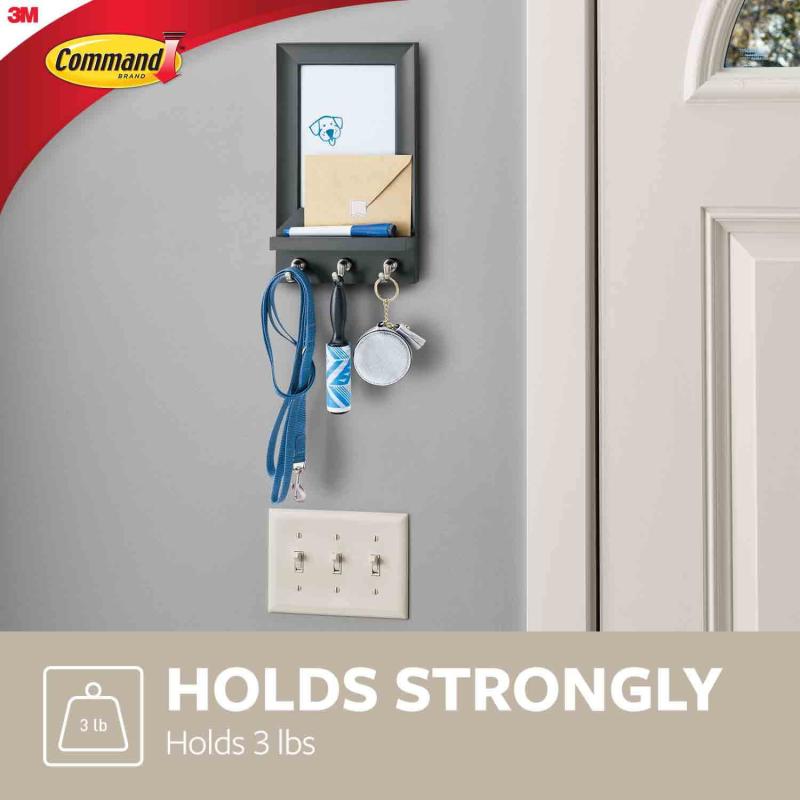 The Command Mirror Organizer makes it easy for you to check you appearance on the way out the door. Corral keys and lanyards on the hooks, and the small ledge holds items like lipgloss or outgoing mail. The Command Mirror Organizer is simple to hang no tools required! Using Command Adhesive, the Command Mirror Organizer holds strongly on a variety of surfaces, including paint, wood, tile and more. Yet, it also comes off cleanly no holes or sticky residue providing a great alternative to damaging screws and nails. Reusing our small hanging mirror is as easy as applying Command Refill Strips, so you can take it down, rearrange and reuse again and again!