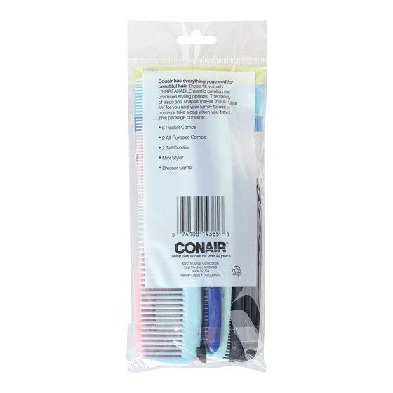 Conair 12-Piece Comb Set, All-Purpose Hair Styling Pack for Every Hair Type & Style