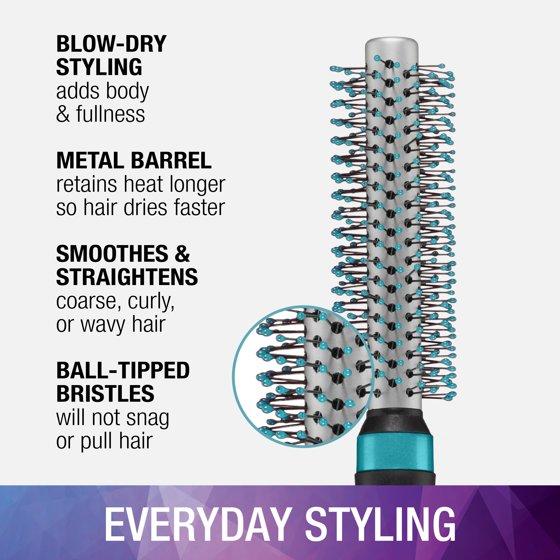 - Heat-powered performance: The metal barrel works with your blow dryer to lock in heat, cutting drying time, while ball-tipped bristles protect your hair from damage