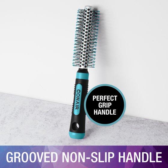 Conair Grip & Style Small Metal Round Hairbrush, Nylon Bristles and Rubber Handle