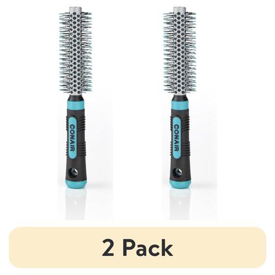 (2 pack) Conair Grip & Style Small Metal Round Hairbrush, Nylon Bristles and Rubber Handle