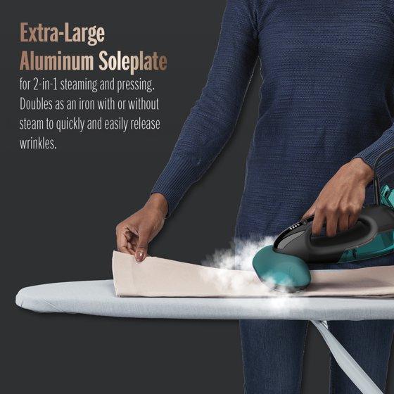 - Steam where you want it: Extra-large aluminum soleplate works magic vertically on hanging clothes or horizontally on your ironing board, with or without steam