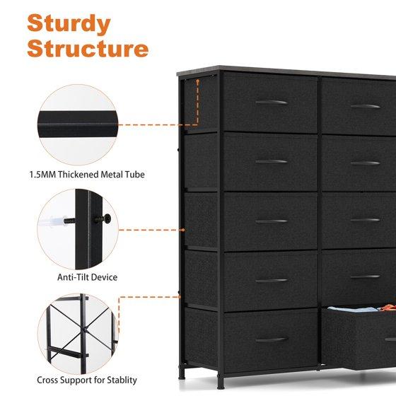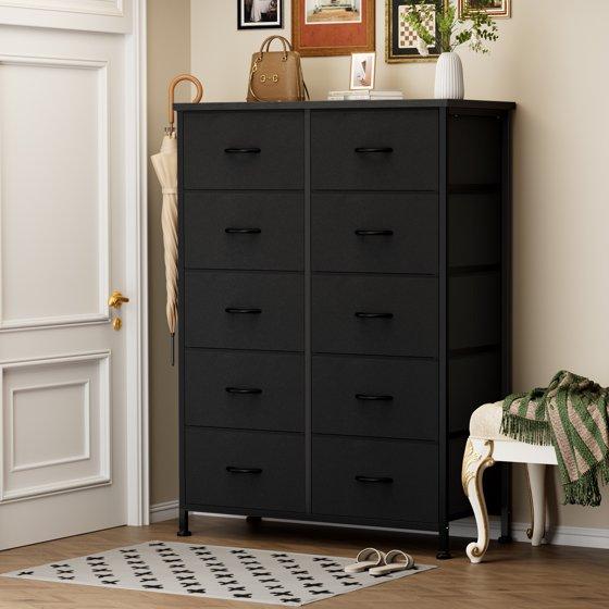 CONCETTA 10-Drawer Fabric Dresser Storage Chest for Bedroom, Closet, Entryway, Storage Furniture for Adults, Black