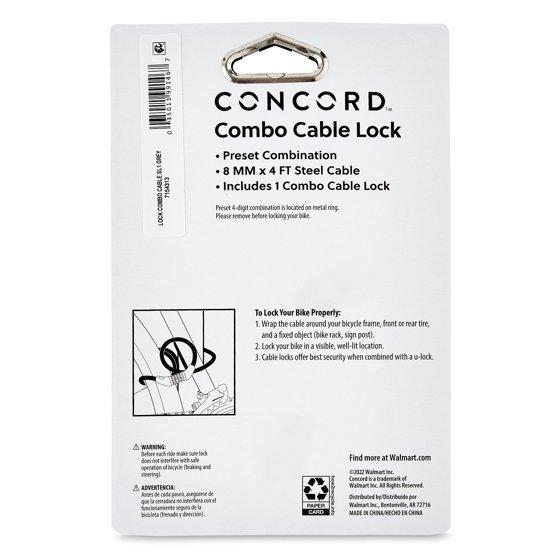 - Concord 8MM Combo Cable Bike Lock keeps your bike safe and secure