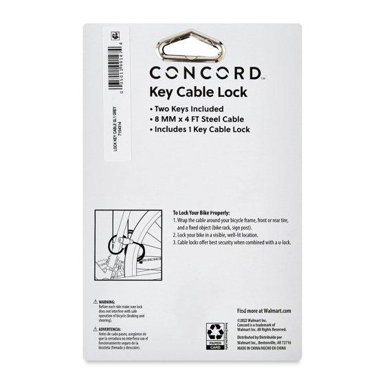 - Concord 8MM Key Cable Bike Lock keeps your bike safe and secure