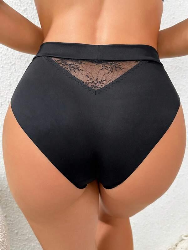 Contrast Lace Bow Front Panty Lingerie Bow Tie