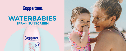 - Coppertone WaterBabies sunscreen spray stays on strong in the water (water resistant 80 minutes)