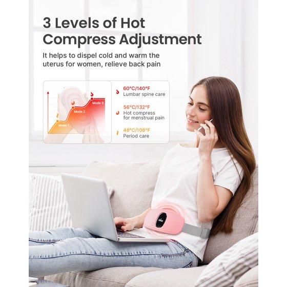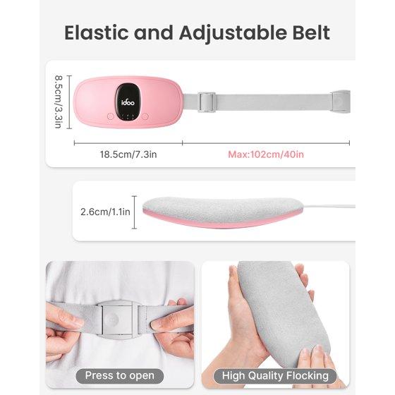 The iDOO electric heating pad for menstrual cramps using upgraded fast heating technology with high thermal conductivity. Suitable for warming the uterus, waist, abdomen, stomach, back, arthritis and more. The portable heating pad has 3 adjustable temperature settings and 3 vibration massage modes, allowing you to select the most appropriate settings. It has a comprehensive overheat protection function that ensures your safety and health by turning off automatically after 30 minutes. The heating pad is made of high-quality, soft, breathable fabric and comes with an adjustable elastic belt that stretches up to 40 inches, making it suitable for any waist size. Additionally, the iDOO cordless heating pad comes with a carrying bag, allowing you to take it with you wherever you go. Heat therapy for back waist belly has a built-in 2000 mAh rechargeable battery that can last for up to 4 hours when fully charged. The Type C USB rechargeable design makes it easy to charge the heating pad anytime and anywhere. This pink period device is suitable for various situations such as resting, working, studying, driving, and doing yoga. It's also a great choice of gifts for women and girls on birthdays, Mother's Day, Valentine's Day, anniversary, Christmas, New Year's, and other festivals.