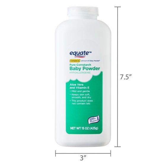 Looking for a gentle, effective way to keep skin dry, soft, and comfortable? Equate Cornstarch Baby Powder with Aloe & Vitamin E is a soothing, talc-free powder designed to help absorb excess moisture while comforting delicate skin with a touch of aloe and nourishing Vitamin E. Made with 100% pure cornstarch, this hypoallergenic baby powder is free from talc, parabens, phthalates, and quaternium-15, making it safe and gentle enough for daily use on babies, children, and adults. Whether you’re using it to keep your baby’s diaper area fresh or to reduce friction and chafing on your own skin, Equate Cornstarch Baby Powder with Aloe & Vitamin E delivers soft, breathable comfort with every application. The naturally absorbent formula helps keep skin dry and irritation-free, while aloe and Vitamin E work to soothe and condition. It’s perfect for post-bath routines, diaper changes, or anytime skin needs a little extra care. For best results, apply Equate Cornstarch Baby Powder with Aloe & Vitamin E directly to dry skin or shake it into your hand before smoothing onto the desired area—avoiding the face and always keeping it out of reach of children. Keep a bottle in your nursery, bathroom, or gym bag for fresh, powder-soft skin wherever you go. Equate Cornstarch Baby Powder with Aloe & Vitamin E is a must-have skin care essential for families seeking a clean, comforting alternative to talc-based powders.