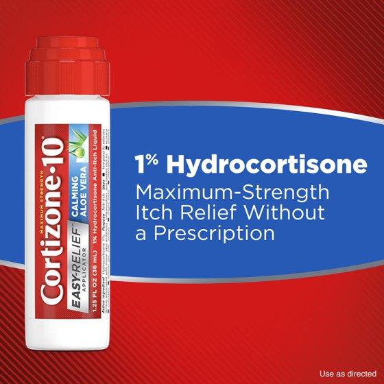 - INCLUDES: One (1) 1.25 fl. oz. bottle of Cortizone-10 Maximum Strength* Soothing Aloe Itch Relief No Mess Applicator (*Among topical anti-itch OTCs)