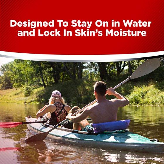 - WATER RESISTANT: Formula designed to stay on in water while locking in skin's moisture